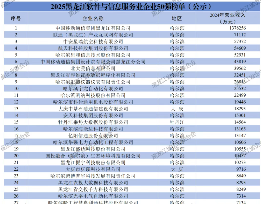 热烈祝贺我公司荣登2025黑龙江软件与信息服务业企业50强